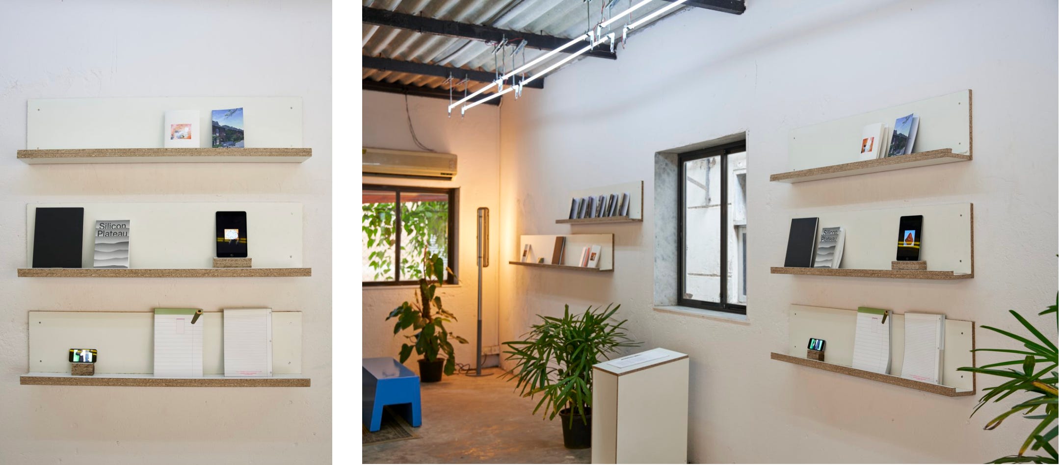 Tara’s show Content marked the launch of its first iteration. The artist is currently exhibiting four video works including a video installation called Homeward which uses a projector fitted onto a roomba in motion, and an archive of her books. “Two of these books No Help From Epson and TWIN SHARING I made during the last two years where I indulged a completionist impulse I have, to click on every page or save every image,” Tara tells me. The former is a collection of images that she first discovered while attempting to shop for a printer on Amazon, while the latter is a tome of 1000 fascinating images of barely distinguishable beds for rent in Bangalore, found on ‘no broker’ Facebook groups and websites. The shed’s windows are covered in “emoji on vinyl”.
