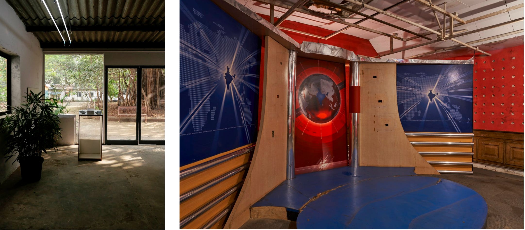 The structure that we now inhabit used to house the office of an old TV news channel. The space itself was quite a challenge to take on in that it was left abandoned 10 or so years ago, and so we found it completely dilapidated. One thing that we consciously decided was to leave the existing facade the way it was, barring minor restoration that was required safety-wise. So after stripping the structure of it’s false walls and ceilings, we were left with a roughly finished space but also one that still revealed a bit of its history. We left some things completely untouched too, like the studio where the broadcasting took place. We intend to use it almost as a “media room” to showcase performances, live streams or media related work, nodding to its history a bit.