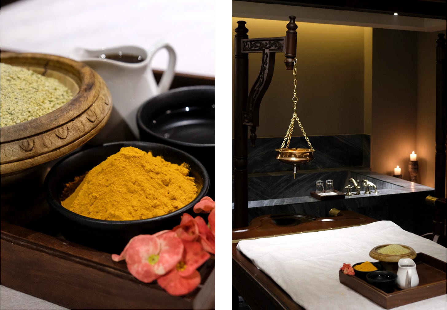 The spa’s signature treatment is the Roots of Jaipur, a scrub made from a local recipe - crushed green gram with honey and turmeric, that’ll slough off your dead skin and leave it baby soft, followed by a massage and lung cleansing steam.