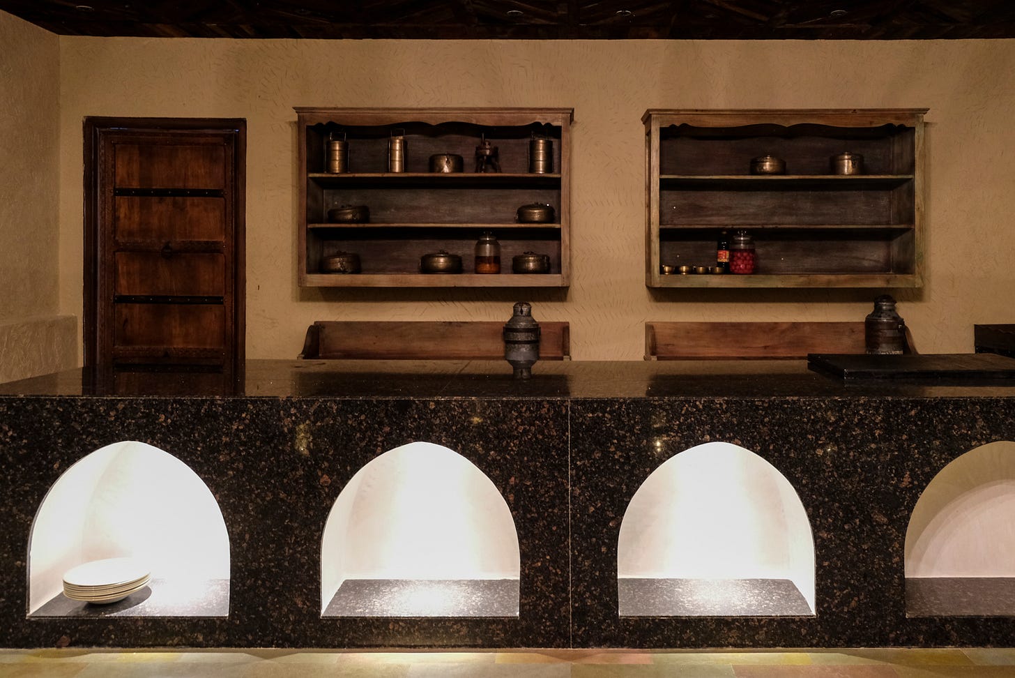 Once the fort’s magazine - the place where artillery was stored (not unlike the one in this story), today the spa is a sanctuary of calm. The narrow, winding corridor that leads me there offers some clues of what to expect. Soft candle light flickers over the granite boulders that are the hallmark of the hillock the fort is built on, antique attar bottles and Alila’s signature range of products are showcased inside nooks, my treatment room has no edges, making its location at the base of a tower obvious.