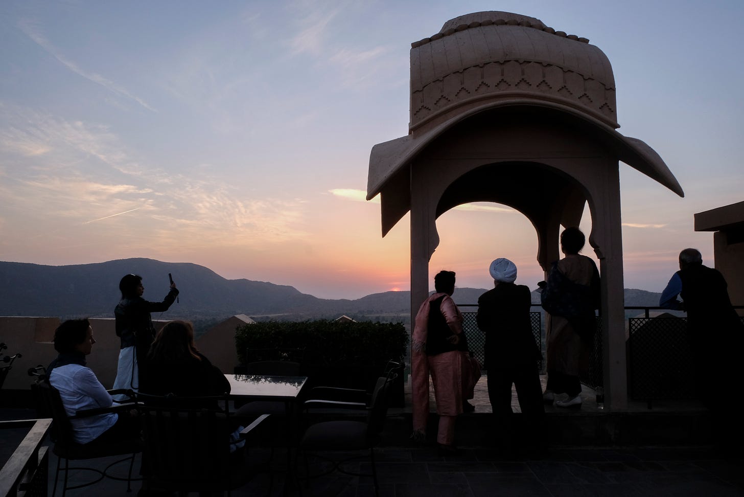Punctuate your sunbathing routine with cold dips, and eat a leisurely lunch at Haveli, the adjacent Mediterranean restaurant. Afternoons are for lazing (and spa treatments) and sunsets are for taking in the view of the Aravallis bathed in orange from Nazaara, the open-air terrace lounge.